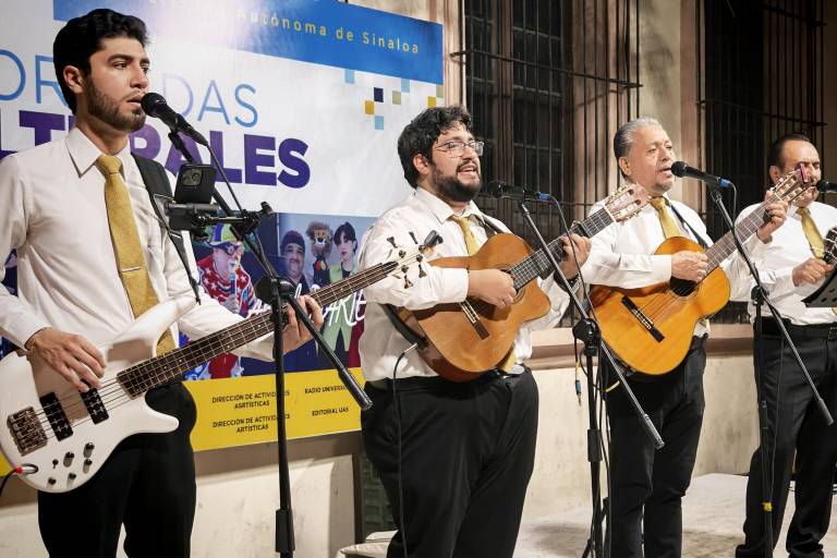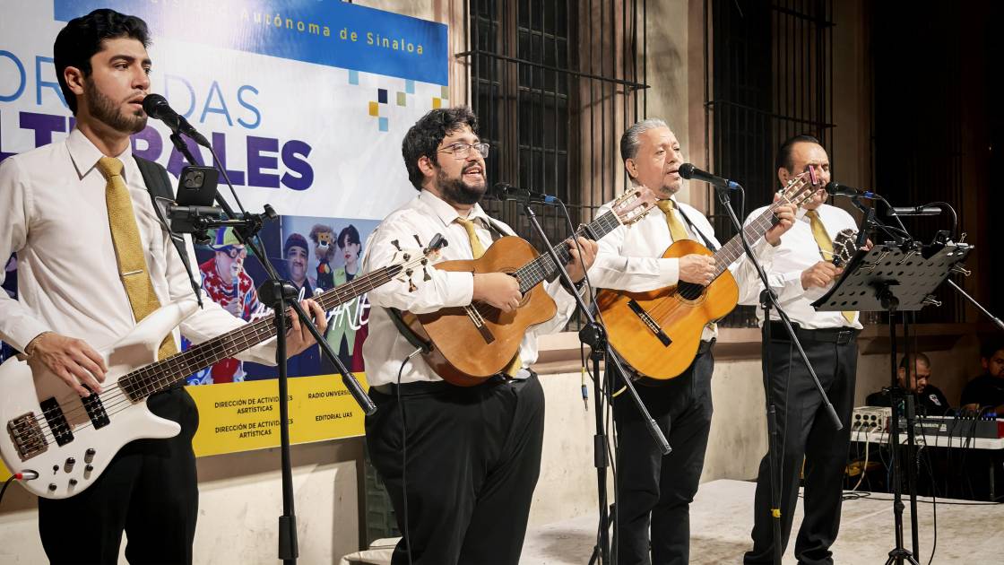 El Programa Miércoles de concierto se engalanó con una de las agrupaciones más representativas de la Universidad Autónoma de Sinaloa: el Cuarteto San Miguel, quienes ofrecieron el espectáculo “Serenata bajo la luna de octubre”, para impregnar de romanticismo el ambiente en el Paseo del Ángel.