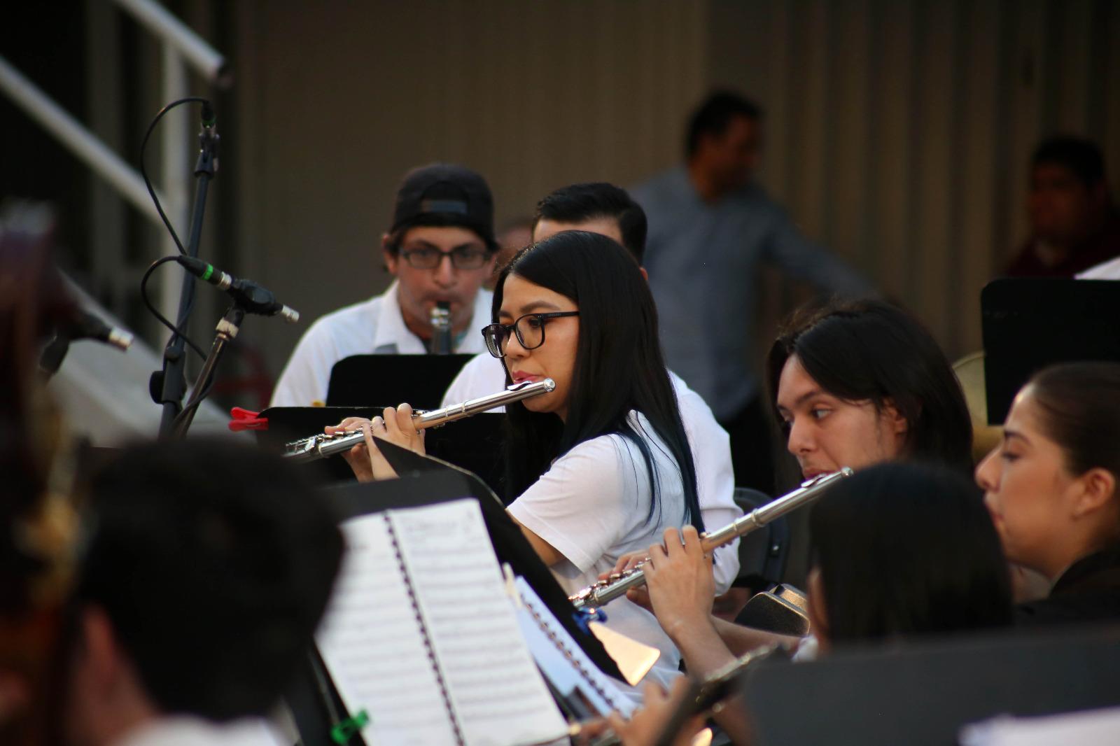 Un numeroso público de todas las edades se congregó en el Ágora Rosario Castellanos para disfrutar del concierto Rock Retro Sinfónico, a cargo de la Banda Sinfónica Juvenil del Estado, con temas de Los Beatles, Elvis Presley, Queen, Santana y Deep Purple Meadley, con un sonido sinfónico, y la participación como invitados especiales, de Jesús Leonel Sánchez en la guitarra eléctrica y del cantante Pedro Pablo Camacho Ramírez.