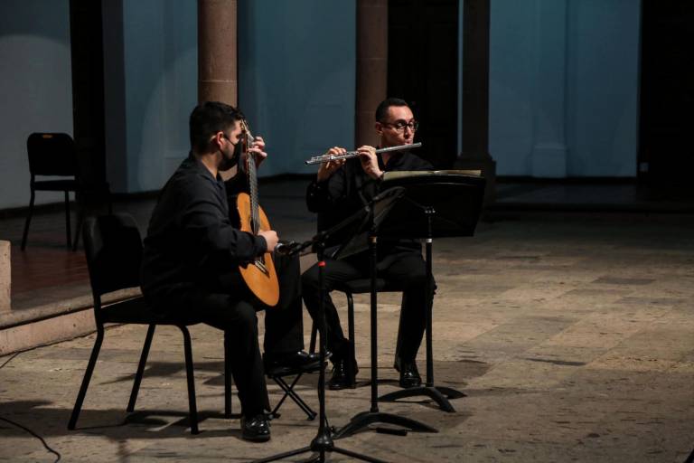 Con una numerosa concurrencia, el programa abrió con la pieza Zarabanda y Son, de Arturo Márquez, interpretada en el arpa por Marco Antonio Castro, para continuar con un dúo integrado por Iván Ramírez Ahumada en la guitarra y Marco Krotzsch en la flauta, para interpretar la Suite Habana, de Eduardo Martín, la cual se integró con cuatro escenas: Lugares comunes, Amaneceres, Laberinto y Sol y sombras.