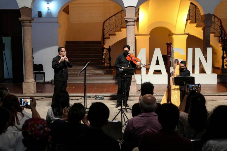 En una edición extraordinaria del ciclo de música de cámara OSSLA para todos, músicos de la Orquesta Sinfónica Sinaloa de las Artes se presentaron en el patio del Museo de Arte de Sinaloa, con el programa Ensamble folclórico, que incluyó temas de compositores latinoamericanos y arreglos camerales a temas populares, incluso de mariachi.