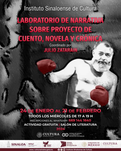 Todas las personas que se encuentren trabajando un proyecto de libro de cuentos, crónicas o novela, o tengan ya un primer borrador, que requiera revisión y asesoría antes de publicarlo podrán participar en el Laboratorio de narrariva que impartirá Julio Zataráin en el Museo de Arte de Mazatlán.