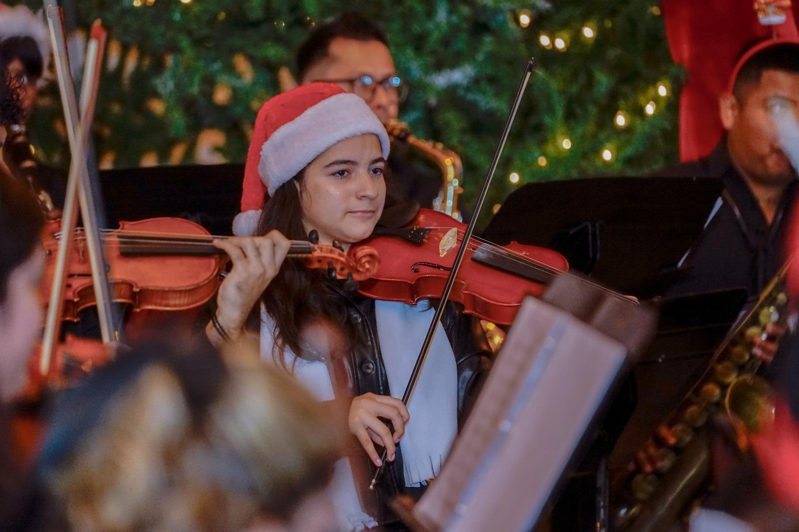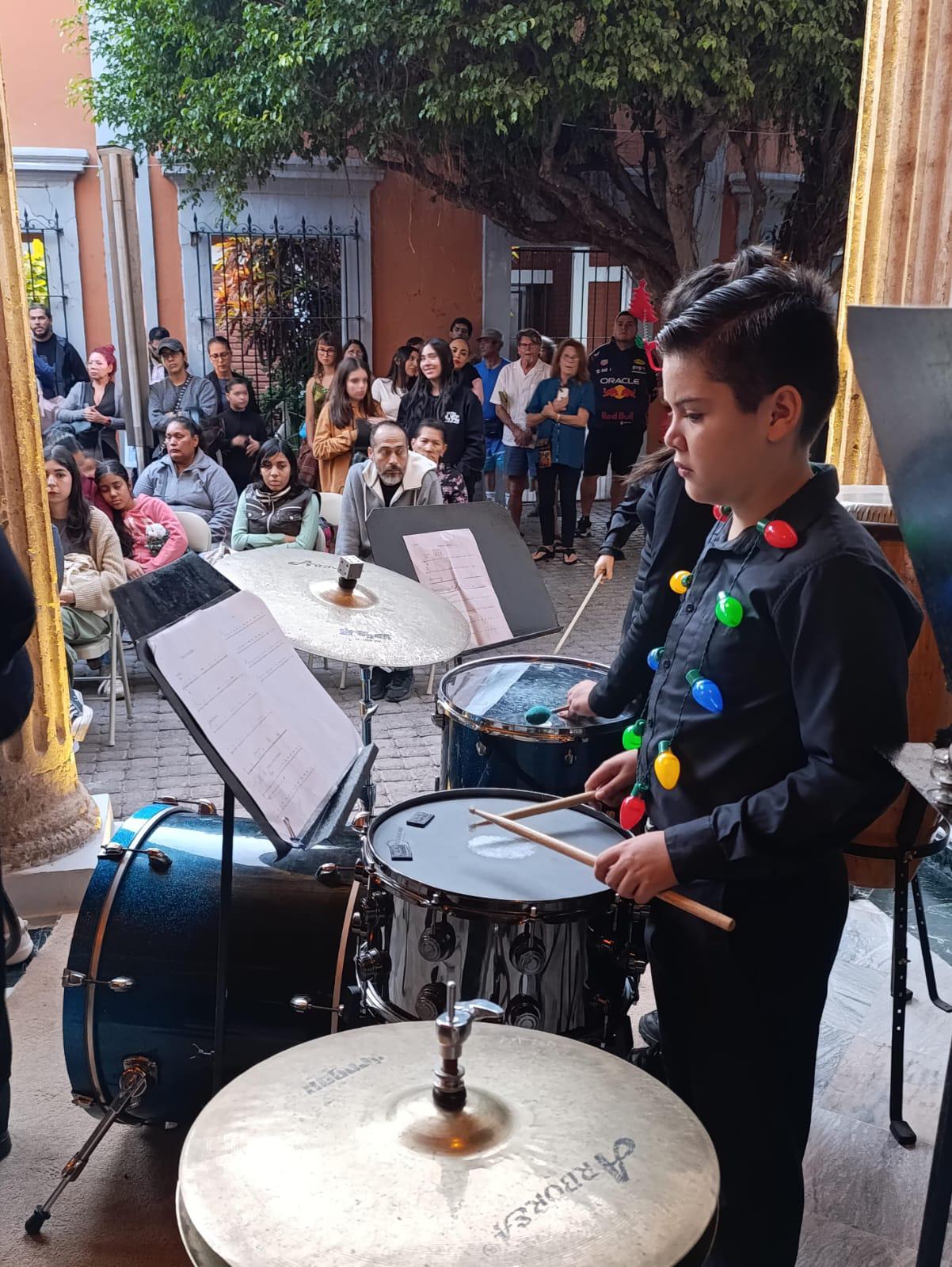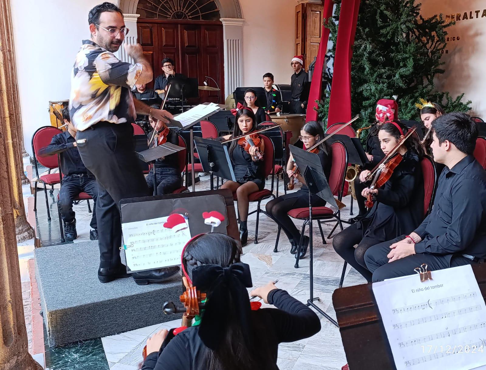 El Pórtico del Teatro Ángela Peralta fue el escenario de sorprendentes conciertos navideños protagonizados por la Orquesta Infantil del Centro Municipal de Artes, dirigida por el Maestro Víctor Alonso Osuna, y la Orquesta Juvenil del CMA, a cargo del Maestro Juan Carlos Chavarría.