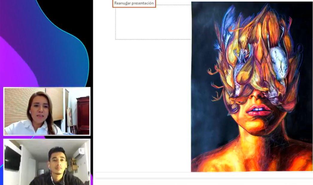 Acompaña de Demetrio estrella en la conducción y en evento transmitido vía streaming a través de las cuentas institucionales Cultura UAS y Radio UAS, la creadora manifestó estar: “siempre en búsqueda, siempre me estoy buscando, entonces la Escuela de Artes es un parteaguas, además de terminar la licenciatura he estado tomando diferentes talleres que tiene que ver con más sentido filosófico, porque las artes no nada más es saber pintar, es saber, escribir, las artes tienen esa particularidad.
