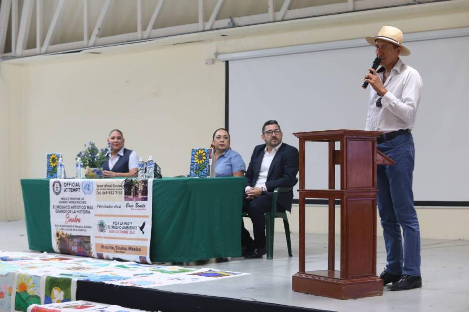 De momento, señaló Ernesto Ríos Rocha, quien en 2009 inauguró su obra Desarrollo histórico, económico y turístico del Mar de Cortés, en el Mazatlán International Center y que dicho mural fue registrado en los Récords Mundiales Guinness como el más grande del mundo pintado por una sola persona, que el mosaico se efectuará en febrero, en una explanada de Mocorito, Sinaloa.