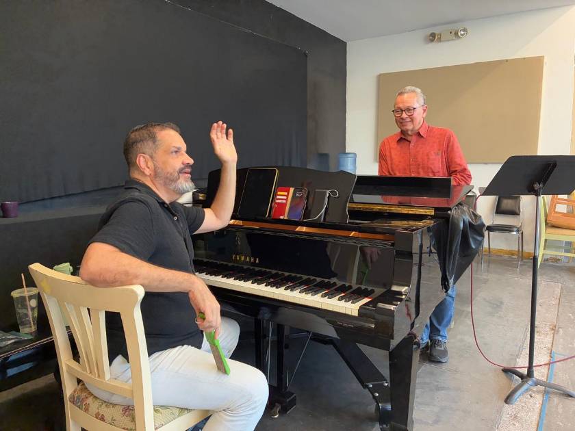 El tenor José Manuel Chu, director del Taller de Ópera de Sinaloa, con Carlos Conde. -