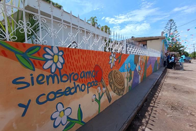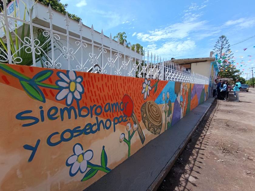 Pinta comunidad el mural ‘Siembro amor para cosechar paz’