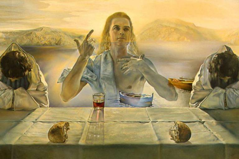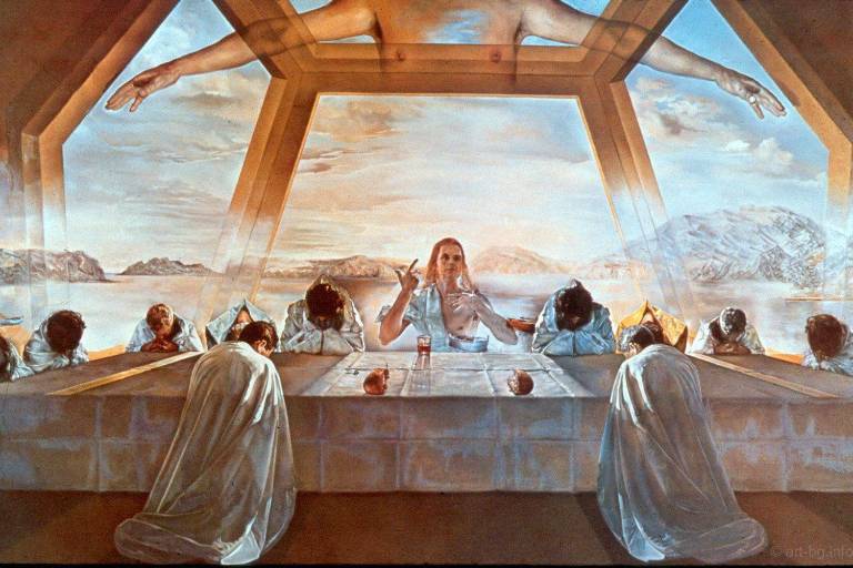 Salvador Dalí tiene más fama por sus “Relojes blandos” de su etapa “Onírica”, en cambio el cuadro “El Sacramento de la Última Cena” de su época “Atómica” es una de sus obras más geniales pero menos conocida. El reto de igualar o superar a Da Vinci con su “Última cena” era algo que Dalí se tomó muy en serio y logró no solo hacer una obra maestra sino aportar sustancialmente a la historia del arte rompiendo paradigmas como solía hacerlo naturalmente. Basándose en la composición del italiano, Dalí nos muestra que la concepción del arte significa mucho más que solo las destrezas, es decir: las grandes obras son grandes concepciones magistralmente realizadas.