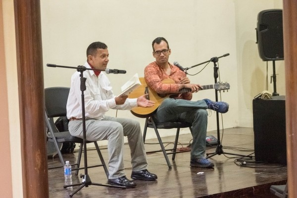 El poeta Eduardo Guzmán Chávez emocionó en la Casa Haas al declamar poesías de su más reciente libro, Poemas para recuperar la salud en un dos por tres, con el acompañamiento musical del guitarrista porteño Gonzalo Magaña.