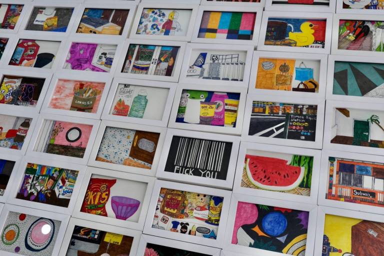 “Es un proyecto que vengo trabajando por años, en 2017 en un viaje vi una pared llena de dibujos, dije quiero hacer eso, hacer 100 a 150 y presentarlos todos, porque cada dibujo es una pieza individual y juntos se leerán como una viñeta de cómic, que está la vista en horizontal y vertical”, apuntó.