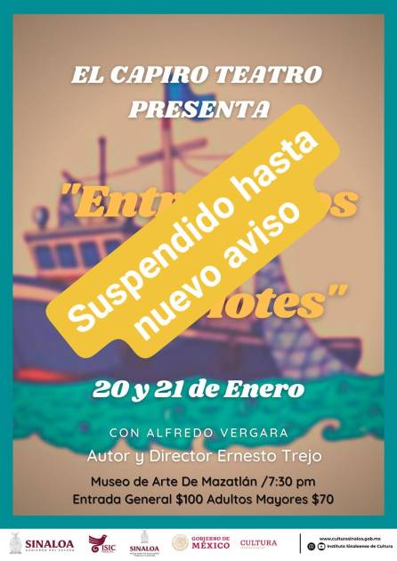 Entre las actividades que se reprogramarán está la 11 Encuentro Nacional de Creación Plástica Itinerante Sinaloa y la presentación de la obra de teatro “Entre pavos y guajolotes”, de Ernesto Trejo, que se tenía previsto efectuar del 20 y 21 de enero y se suspende hasta nuevo aviso.