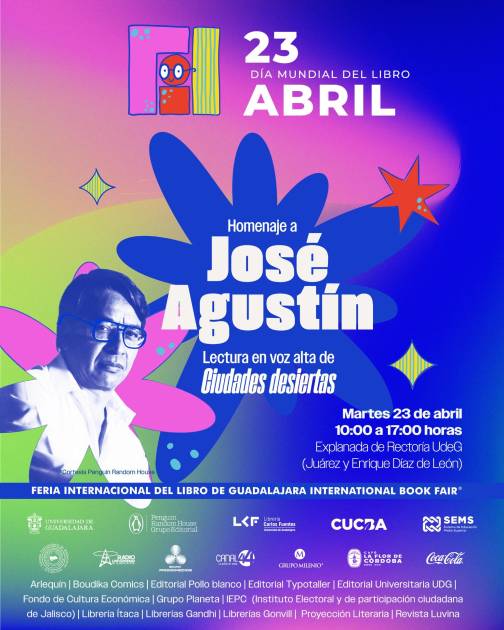 La Feria Internacional del Libro llevará a cabo el maratón de lectura en voz alta, de la novela Ciudades desiertas, del escritor mexicano José Agustín, el 23 de abril en la Explanada de la Rectoría de la Universidad de Guadalajara.