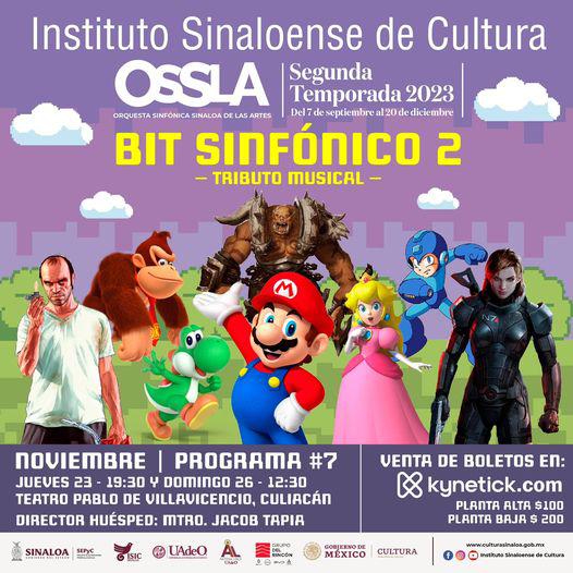La Orquesta Sinfónica Sinaloa de las Artes ofrecerá está lista para presentar el programa ordinario No. 7, con el concierto “Bit Sinfónico 2”, con dos funciones el próximo jueves 23 a las 19:00 horas y domingo 26 a las 12:30 horas, en el Teatro Pablo de Villavicencio.