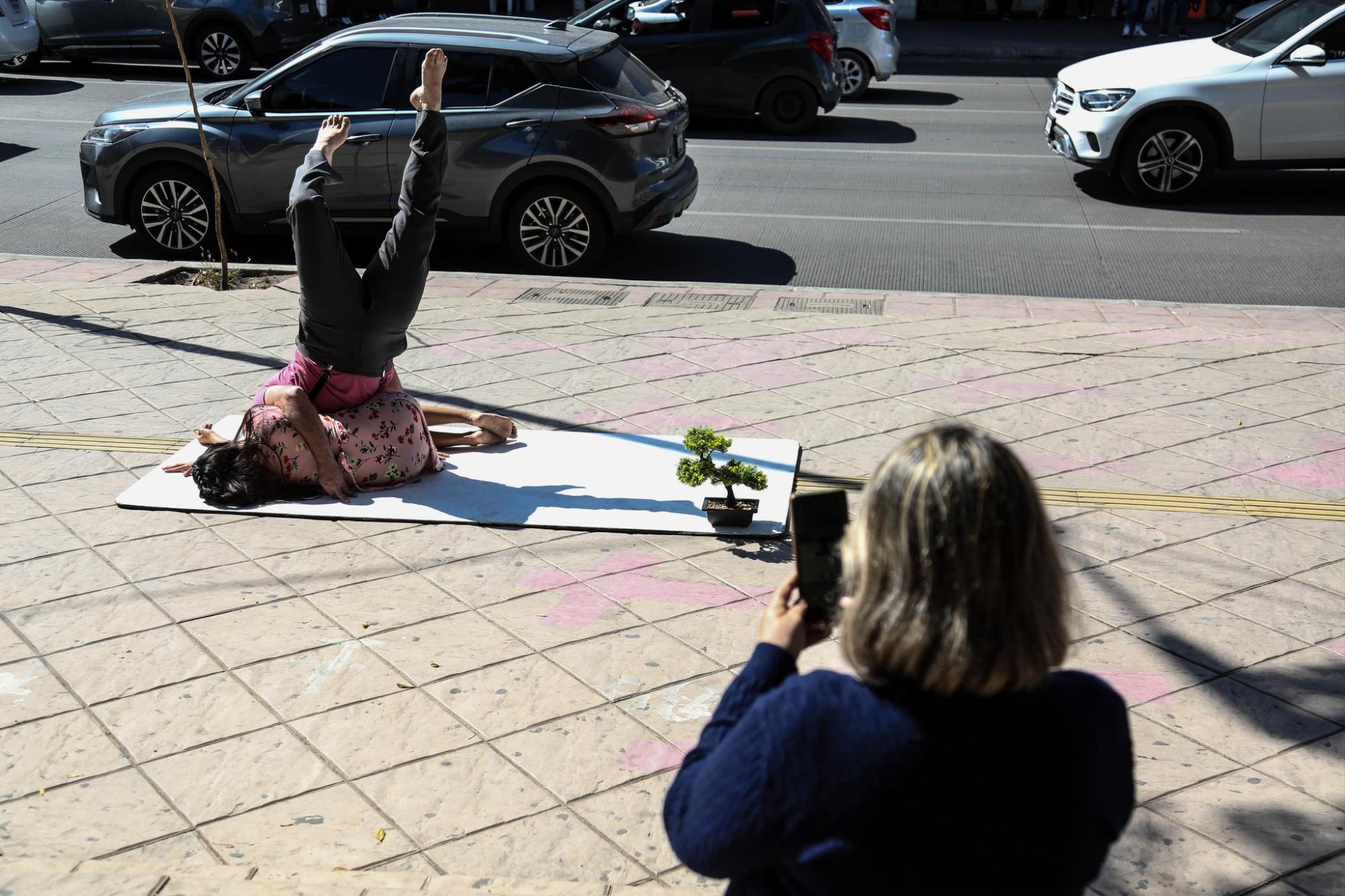 Los transeúntes se concentraron alrededor de los danzantes para observar y más de uno grabar el acontecimiento.