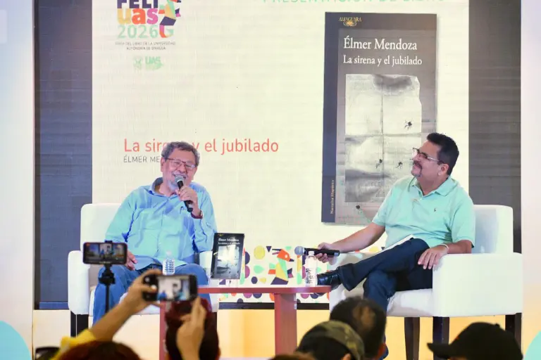 En un diálogo cercano, reflexivo y por momentos anecdótico, el escritor sinaloense Élmer Mendoza presentó su novela La sirena y el jubilado, en lo que fue el cierre de las actividades de la FeliUAS 2026.