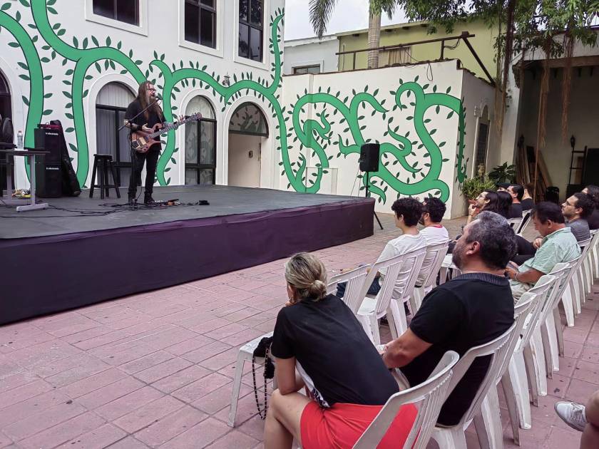A lo largo de la charla, platicó sobre sus procesos creativos y de su primer álbum, que es una antología en forma de cinta sonora que abarca los últimos 24 años de carrera como bajista de grupos como Parazit, Clandestino, Nata, Clondementto y Bajotres.