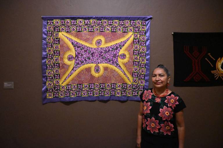 “En estos trabajos participamos mujeres y presentamos un poco de nuestra identidad cultural yaqui, con nuestros padres y los cerros emblemáticos que nos protegen y que guardan una anécdota de nuestros ancestros a través del cuento llamado El chapulín brujo”.
