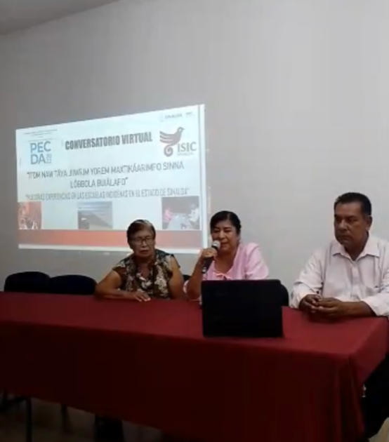 El conversatorio, que se realizó de manera bilingüe, se llevó a cabo como parte de la Muestra Estatal de Beneficiarios del PECDA Sinaloa 2022 y se transmitió a través de las redes sociales del Instituto Sinaloense de Cultura, y en ella estuvo acompañado por dos profesores que le apoyaron en el proyecto.
