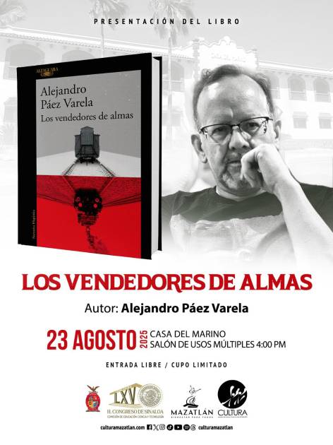 El reconocido periodista y escritor Alejandro Páez Varela llegará a Mazatlán para presentar su más reciente obra “Los vendedores de almas”, en el Museo Casa del Marino, a las 16:00 horas.
