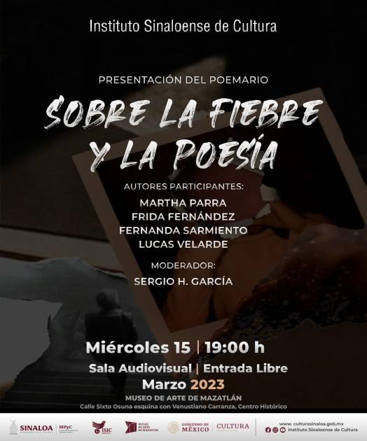 A través del colectivo literario “La Ballena Literata” y Museo de Arte de Mazatlán, la Delegación Sur del Instituto Sinaloense de Cultura, se presentará el 15 de marzo el poemario, “Sobre la fiebre y la poesía”, en la sala audiovisual del recinto.