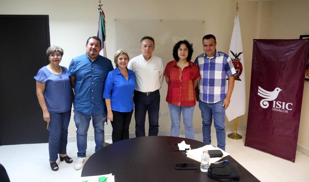 Juan Salvador Avilés Ochoa, director general del Instituto Sinaloense de Cultura; Claudia Apodaca Elenes, directora de Formación y Capacitación; Ernestina Yépiz, directora de Literatura y Editorial; Raúl Francisco Quiroz, jefe del Departamento de Salas de Lectura, e Isaac Esparragoza, director de Bibliotecas y Salas de Lectura del Isic, compartieron la información.