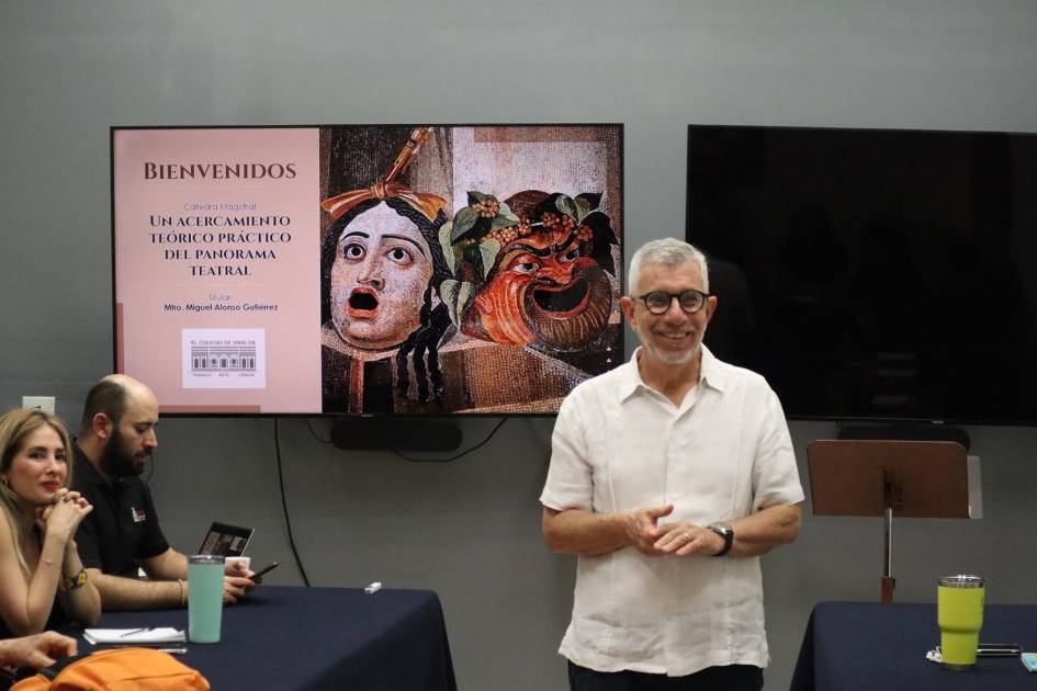 Con el tema Un acercamiento teórico-práctico del panorama teatral, El Colegio de Sinaloa dio inicio a la Cátedra “José Limón” en Teatro, a cargo de Miguel Alonso Gutiérrez, en la sala de videoconferencias de este organismo colegiado.