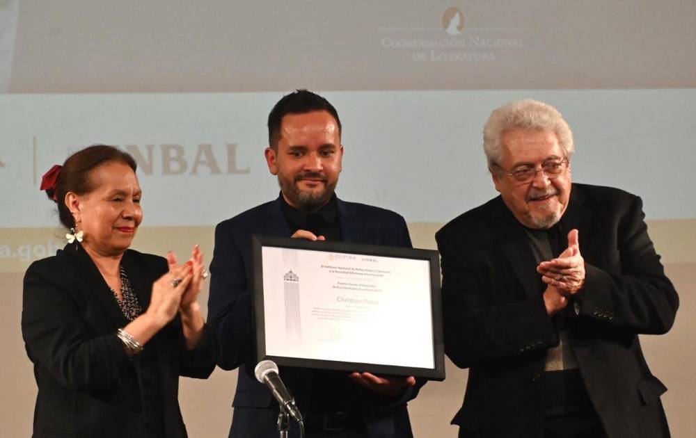 “A esta galaxia de las letras mexicanas se suma hoy con este premio la obra de Christian Peña, desde una postura muy propia; hay una manera de entender la necesidad de la poesía y a través de ella, podemos asomarnos al mundo de lo sensible, entender que esa humanidad, que al mismo tiempo que guerrea, violenta y desespera, a través de la poesía puede imaginar lo imperfecto, lo imposible y lo insólito que nos devuelve esa calidad de personas sensibles”, agregó.