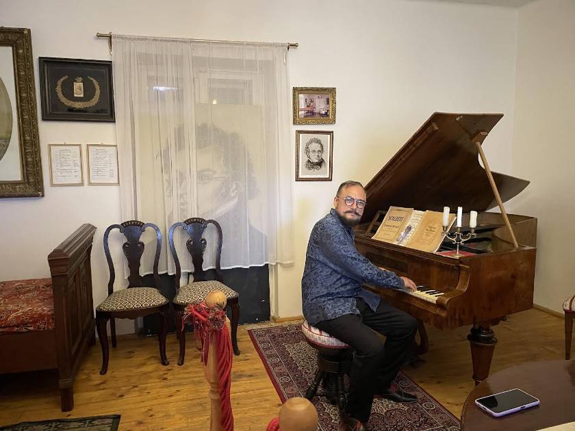“Me encontraba en Eslovaquia para el cumpleaños de mi suegro, y llegó un amigo de la familia, quien al enterarse que yo era pianista, organizó junto a mi esposa un improvisado recital en el la sala de conciertos del Museo de Franz Schubert, algo que yo no esperaba, por lo que inmediatamente empecé a preparar un programa corto para la presentación”, detalló.