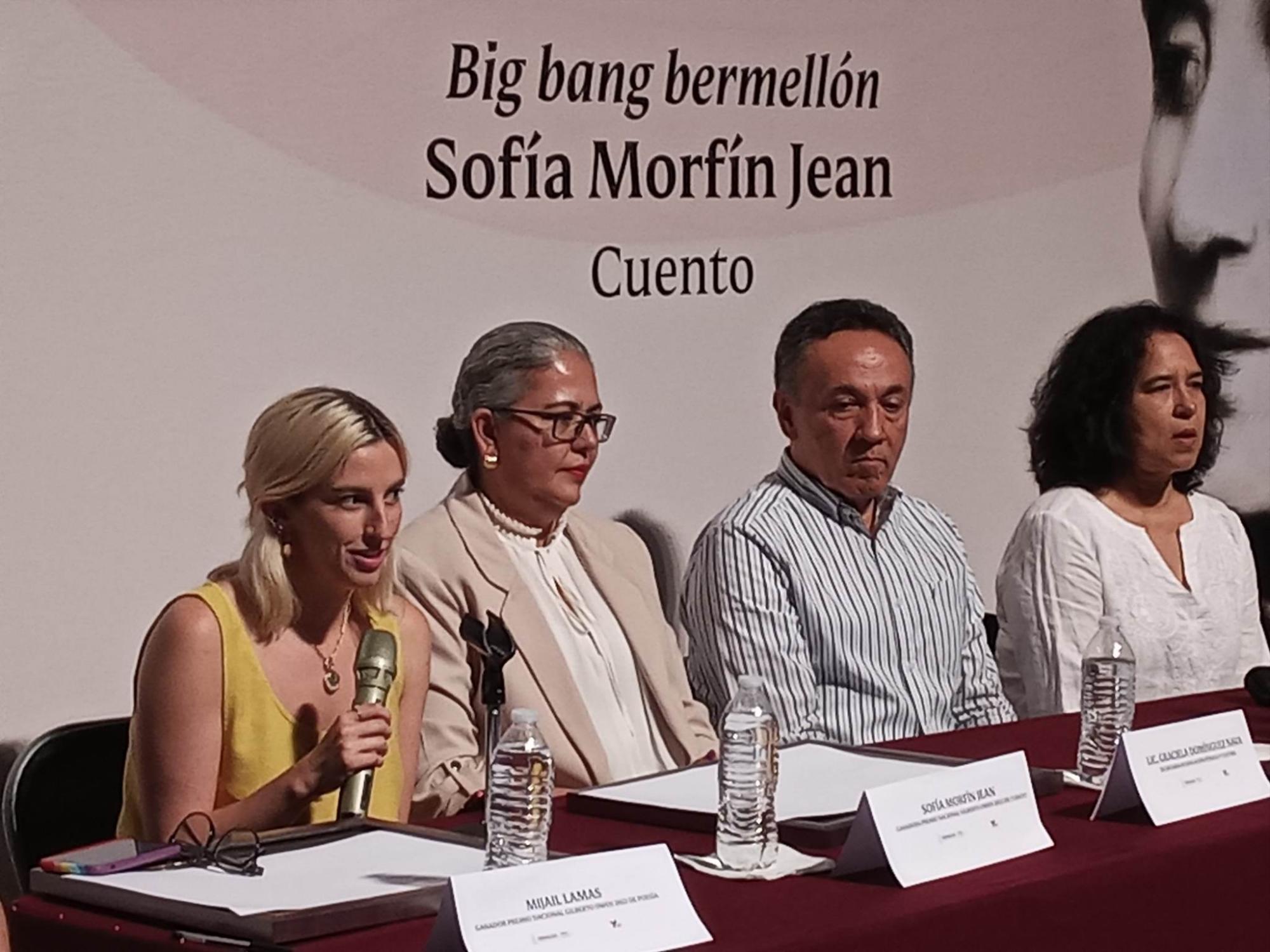 Tras recibir el galardón, entre los aplausos de escritores y amantes de la literatura, Sofía Morfín, de 30 años de edad y ganadora con el libro de cuentos “Big bang bermellón”, comentó que “un premio como este permite a personas como yo, que empezamos apenas a escribir, surgidos aparentemente de la nada, en la soledad de nuestro cuarto, lejos del mundo literario, participar de algo que es más grande, como lo es la literatura mexicana”.