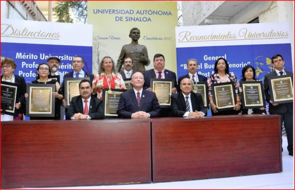En esta entrega de galardones, la UAS hizo reconocimientos post mortem a Juan Ignacio Velázquez Dimas, Diana Margarita Garzón López y Carlos Ramón Carballo Mondaca.