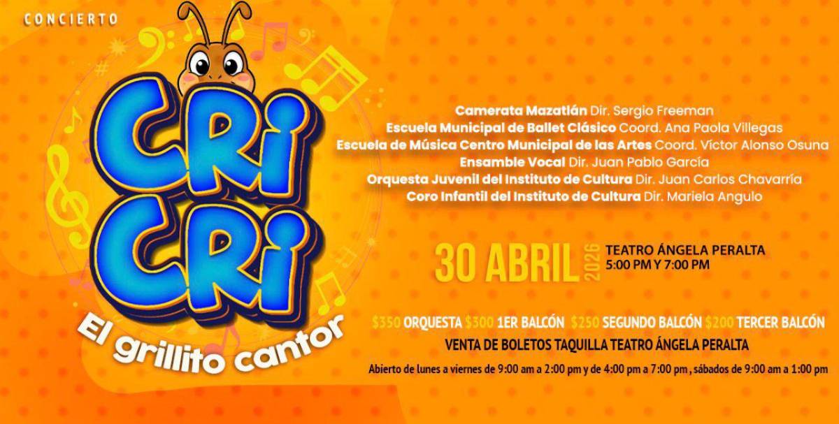 La magia, la fantasía y la música que han acompañado a generaciones regresan al escenario del Teatro Ángela Peralta con “Cri Cri, el grillito cantor”, espectáculo familiar que forma parte de la Temporada Primavera. Para divertirse con este espectáculo habrá dos funciones el 30 de abril, a las 17:00 y 19:00 horas.