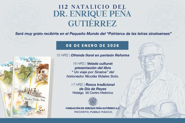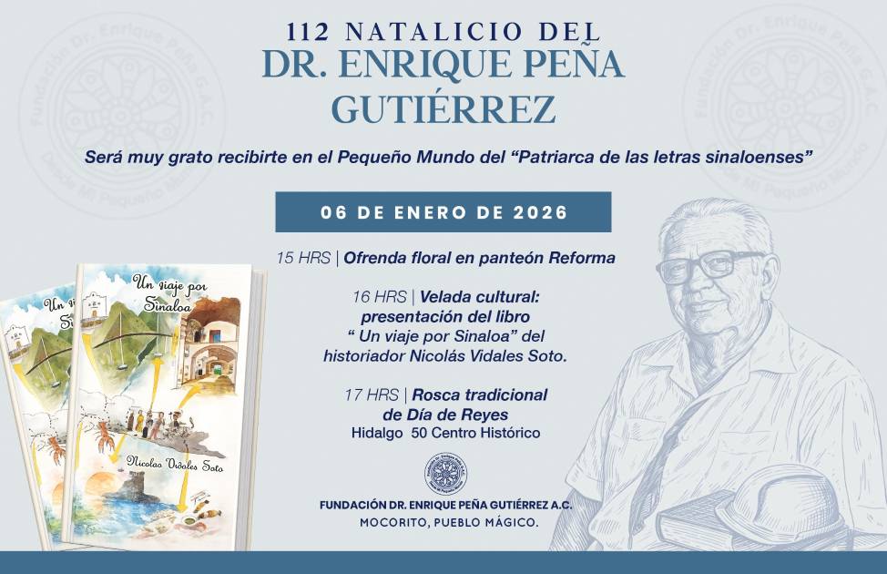 Las actividades darán inicio a las 15:00 horas, en el Panteón Reforma, con una ofrenda floral, posteriormente, a las 16:00 horas, en la Fundación Enrique Peña Gutiérrez, se presentará el libro Un viaje por Sinaloa”, del historiador Nicolás Vidales Soto, y una hora después, a las 17:00 horas, se partirá la rosca tradicional de Día de Reyes, en Hidalgo 50, Centro Histórico.