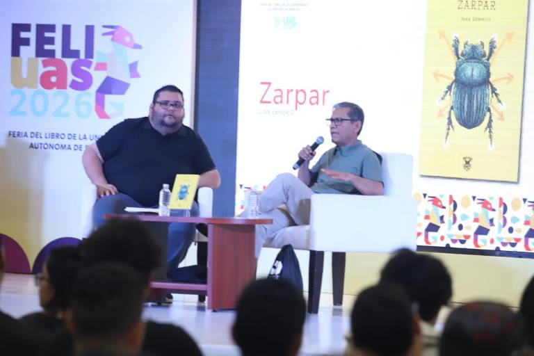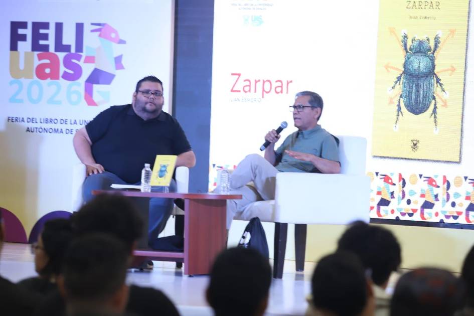 En un espacio dedicado al diálogo entre generaciones y al fortalecimiento del desarrollo literario, el escritor Juan Esmerio Navarro presentó su más reciente obra ‘Zarpar’ durante la Feria del Libro de la Universidad Autónoma de Sinaloa 2026.