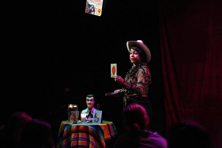 Sobre un escenario que evoca una cantina, con sus mesas y sillas y el público allí sentado, entre cartas de la lotería que van marcando la pauta de los diferentes momentos de la historia, la actriz Laura Angélica Serrano presentó la obra teatral “Chalino Sánchez, la leyenda”, con la que se hizo acreedora a una beca del Programa de Estímulos a la Creación y Desarrollo Artístico Sinaloa 2022.