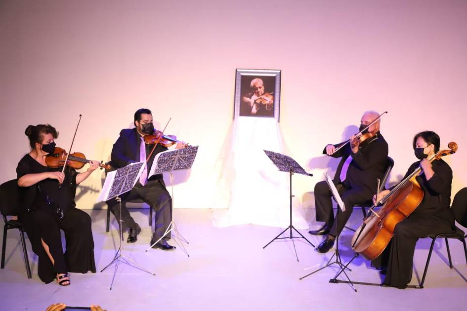 Su hija Martha Olvera no encontró mejor manera que honrar su legado que con un concierto de violines, instrumento que aprendió a tocar casi por obligación de su padre.