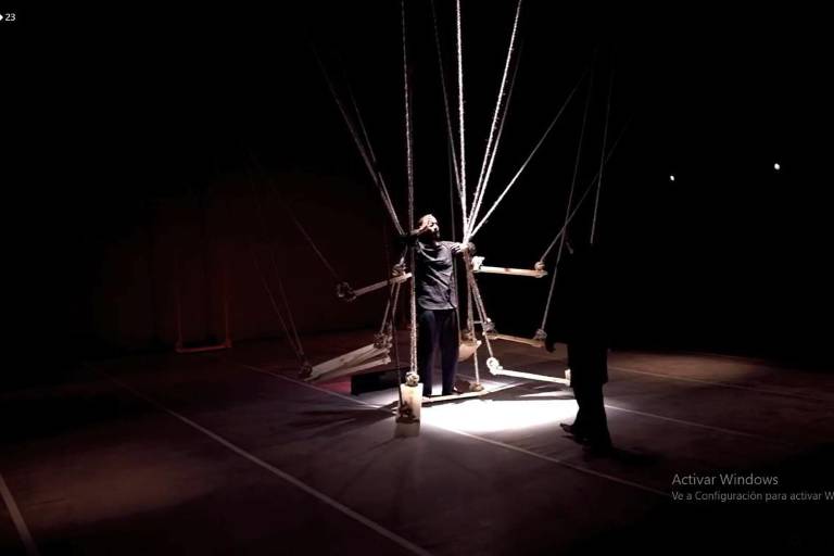 Esta producción con artistas de México y la India inicia con una persona en un columpio, no tiene ropa, no se mueve. A su alredor, dos hombres vestidos de negro se mueven a partir de una vibración y sonidos que emiten con su propio cuerpo.