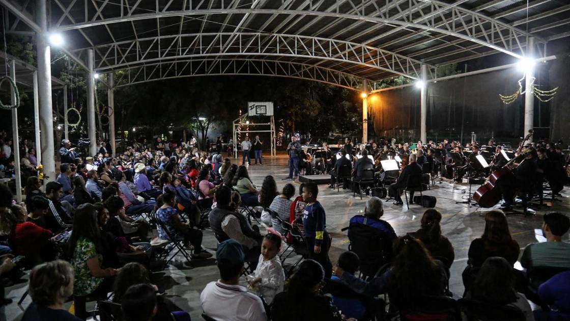 La Orquesta Sinfónica Sinaloa de las Artes regaló un concierto navideño en la Unidad Deportiva Jesús Vizcarra Calderón, del Fraccionamiento Terranova, bajo la conducción del Director huésped, Jacob Tapia.