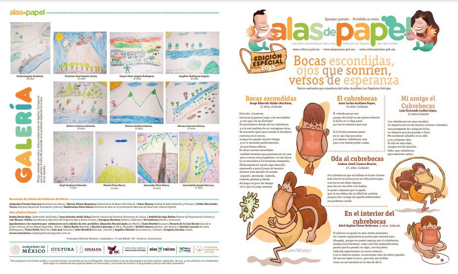 El proyecto Alas de Papel, vio la luz en abril del 2004, y a lo largo de su historia se han publicado 86 ediciones, en esta nueva edición participan niñas, niños y adolescentes de Ahome, Guasave, Badiraguato, Mocorito, Culiacán, Cosalá; San Ignacio; y Mazatlán (Cabecera Municipal y La Noria).