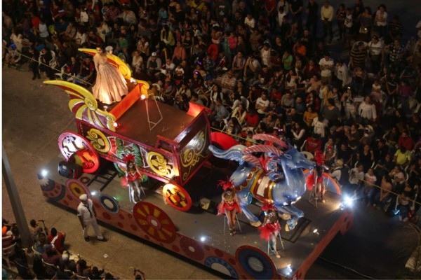 La sección más atractiva del desfile nocturno de Carnaval es la que diseñó Jorge Osuna, que abrió con el tema del Circo Atayde, con un gran elefante en color rojo, eligió fomi y tela para crear la alegoría “Aventura en la selva” desde donde lució su belleza Bianca Pescador, que este año celebró 25 años de su reinado infantil.