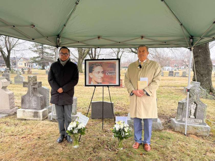 En el cementerio Holy Cross, en Filadelfia, donde descansan los restos del poeta sinaloense Gilberto Owen, la mañana de este viernes, el consulado de México en aquella ciudad y el Gobierno del Estado de Sinaloa, le rindieron homenaje en su 74 aniversario luctuoso.