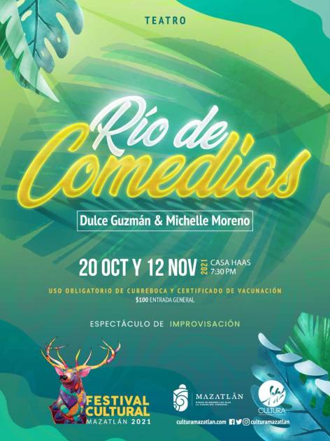 El Festival Cultural Mazatlán 2021 que lleva a cabo el Instituto Municipal de Cultura, Turismo y Arte de Mazatlán presentará el espectáculo “Río de comedia”, un show de improvisación apto para todo tipo de público.