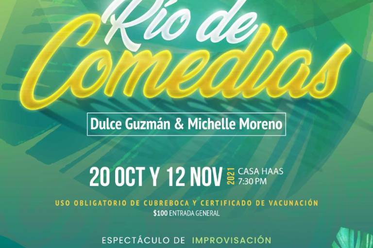 “Río de comedia” se presentará este 20 de octubre y 12 de noviembre en Casa Haas, a las 19:30 horas, el costo de entrada general es de 100 pesos, los boletos pueden adquirirse en la taquilla del Teatro Ángela Peralta.