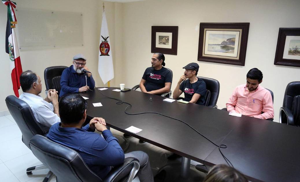 Rodolfo Arriaga, director de Programación del Instituto Sinaloense de Cultura; Robert Spin, director artístico del Encuentro, y Daniel Goiz, director operativo, ambos de la Compañía Áthros Arte Escénico; Alberto Bueno, de Cultura UAS; Ulises Ibarra, del Instituto de la Juventud, y Rubén Sánchez, por el Instituto Municipal de Cultura, dieron detalles del encuentro.