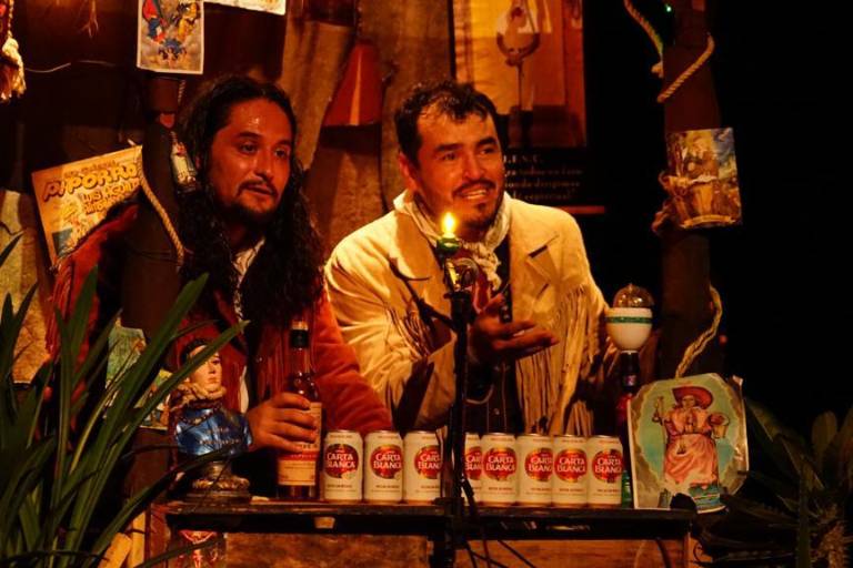 Si El Piporro tuviera oraciones para evocarlo y venerarlo tendrían que estar acompañadas de el baile del taconazo, eso es lo que hacen estos actores, crean un mantra con el sonido que los tacones de sus botines generan, mientras el personaje lanza palabras trepidante para provocar un estado neutro, relajar y preparar al público.
