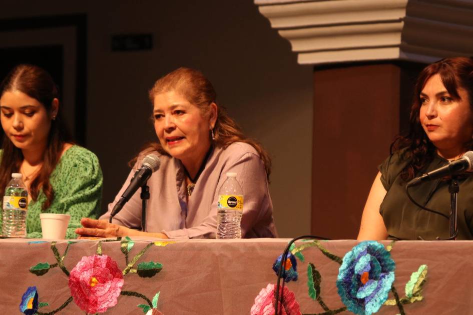 En el patio del Centro Sinaloa de las Artes “Centenario”, la autora estuvo acompañada en los comentarios por Marysol Ojeda y Georgina González Mendívil, así como de Ernestina Yépiz, directora de Literatura del Instituto Sinaloense de Cultura, que editó el volumen en 2019, y que por la pandemia no se había presentado en forma.