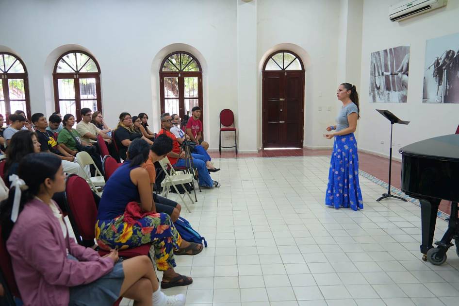 La soprano mexicana, Anabel de la Mora, originaria de Guadalajara, Jalisco, compartió su experiencia y conocimientos en una Máster Class titulada “Consejos para consolidar tus herramientas competitivas en el canto” en el Museo de la Música del Centro Municipal de las Artes.