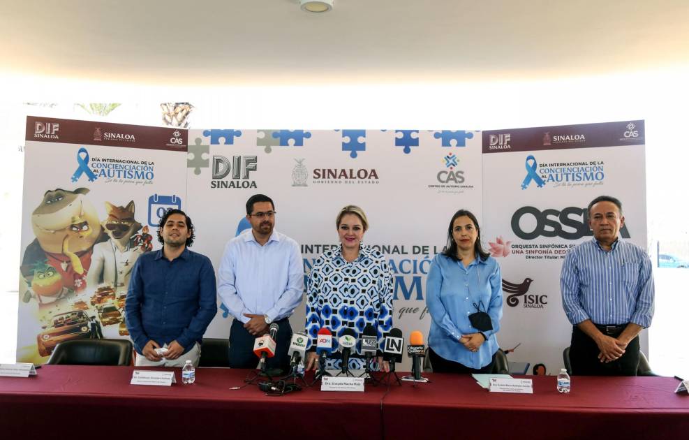 El anuncio del programa de actividades del Día Internacional de la Concienciación del Autismo, que se celebra el 2 de abril, fue hecho este jueves en el Centro de Autismo del DIF Sinaloa, en un evento encabezado por Eneyda Rocha Ruiz, presidenta del Sistema DIF Sinaloa; Estela María Robledo Conde, directora del Centro de Autismo y Juan Salvador Avilés Ochoa, director del Instituto Sinaloense de Cultura.