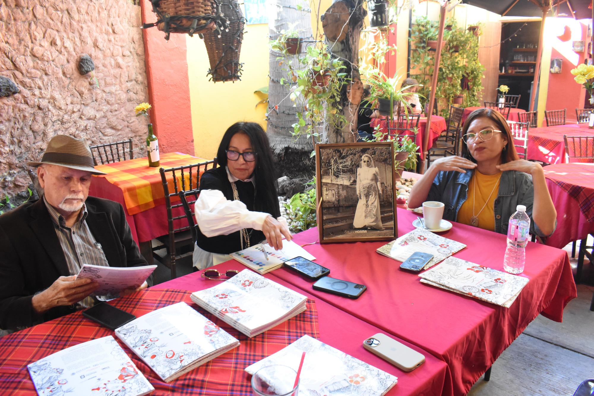 Durante el recorrido compartirá un libro para colorear escrito en lengua Yoreme, sobre Lupita, ‘la novia de Culiacán’. -