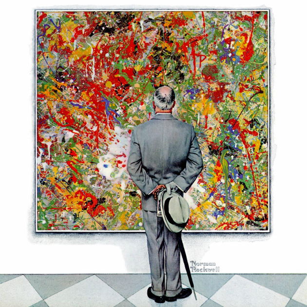 El famoso ilustrador Norman Rockwell a mediados del S. XX fascinado por el estilo tan opuesto de Pollock, rompió su paradigma de pintar tradicionalmente y aprendió a copiarlo ofreciéndonos a una de sus mejores obras.