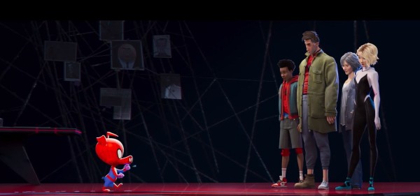 No nos entretengamos más: el chiste es que el líder de los malosos, Kingpin (Liev Schreiber), está buscando crear un portal a otras dimensiones por razones muy personales, lo que provoca que los demás Spider-Man/Woman/Anime/Ham lleguen a nuestra dimensión y traten de ayudar al jovencísimo Miles Morales, que ha heredado “el gran poder y la gran responsabilidad” del mismísimo Peter Parker original.