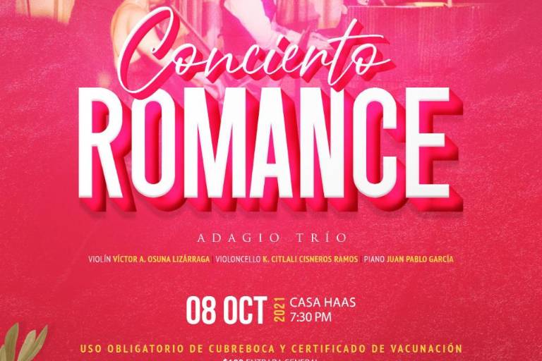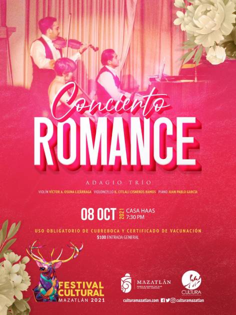 Este viernes 8 de octubre llegará al recinto de Casa Haas el talento de Adagio Trío, para ofrecer el concierto “Romance”, un espectáculo más del Festival Cultural Mazatlán 2021.